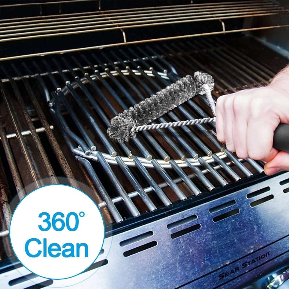 Grill Cleaning Brush; Long-handled Y-shaped Curling Brush; Suitable For Outdoor BBQ