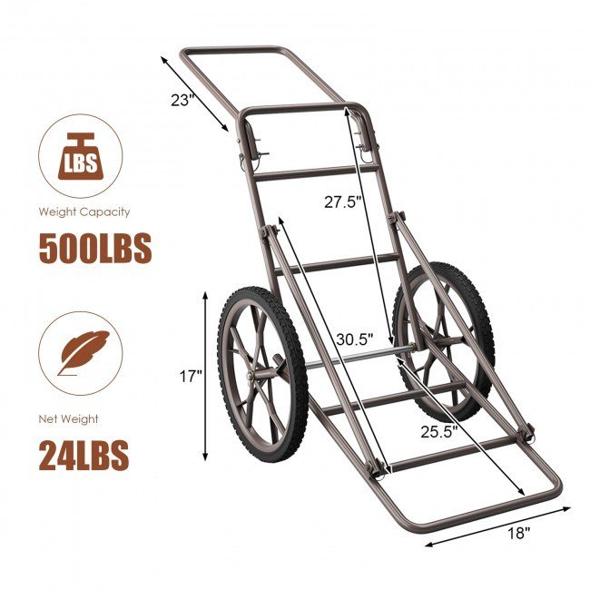 The solid steel frame is strong enough and the large 17" wheels with rubber tire are flexible for hunting in the forest.