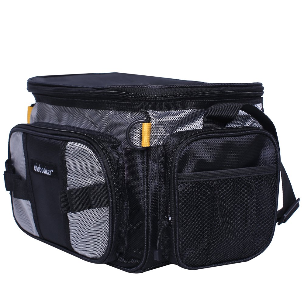 4.Fishing Tackle Box Bag-The Product Dimensions: 14.9” x8.2” x 8.2”,only 15.9oz.The fishing tackle bag is a great fishing luggage for anglers,gives you enough space for a whole day fishing and keeps your gears organized .