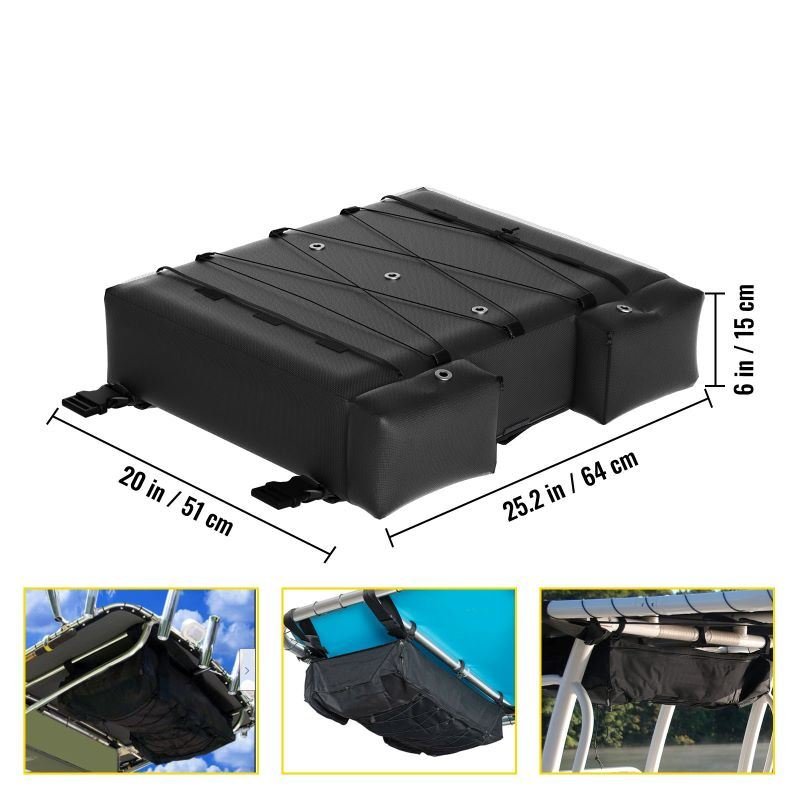 4 Quick-release buckles and 6 hook and loop fasteners make it easy to fix the storage bag on the top of the boat. In addition to the T-Top boat, it can be also applied in Bimini tops, pontoon tops boats and most places with rails and hooks.