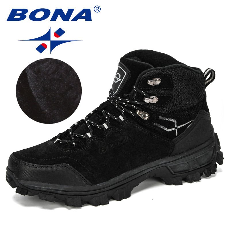 BONA New Designers Genuine Leather Hiking Shoes Winter Sneakers Men Mountain Man Tactical Hunting Footwear Plush Warm Shoes