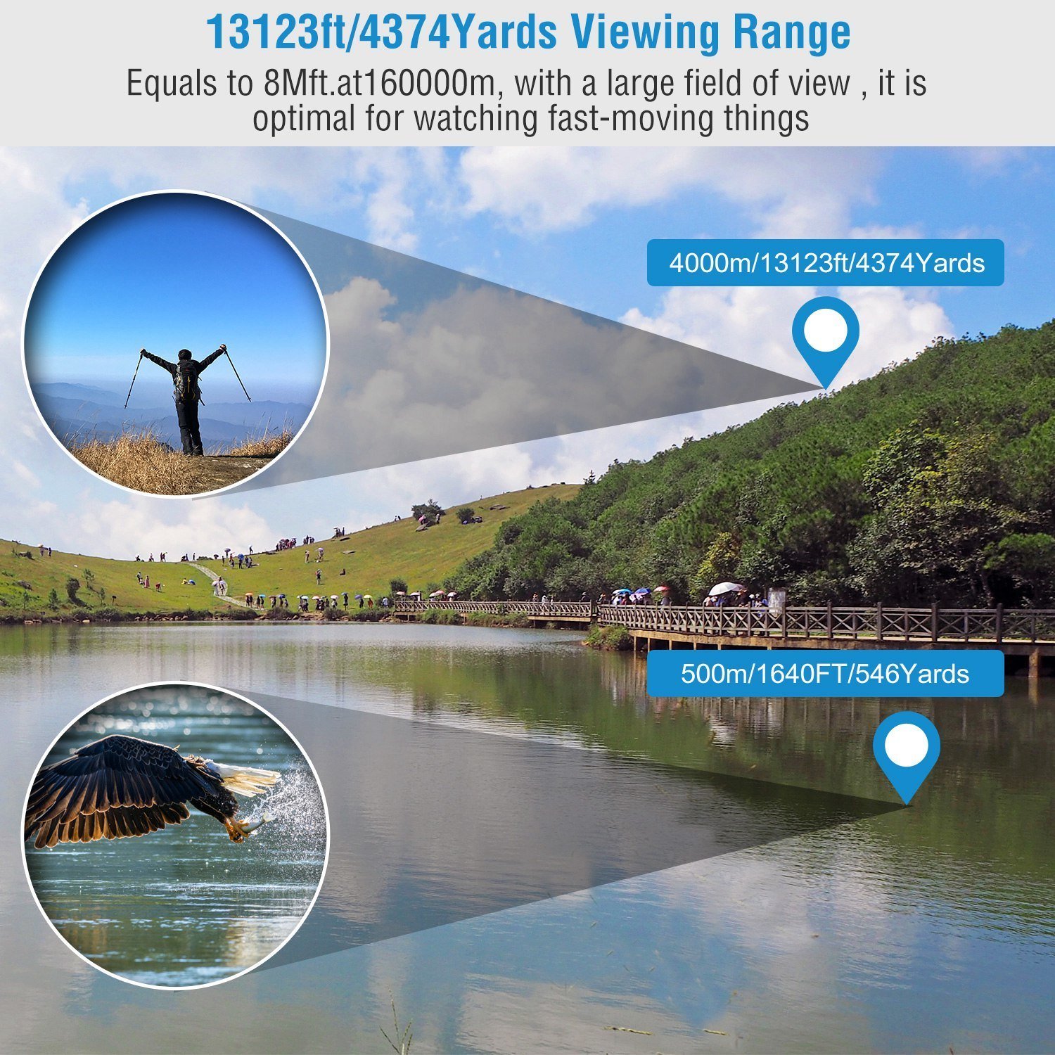 **Large Field of View*:Our binocular adopts high-grade BAK-4 prisms. Equals to 8Mft.at160000m; with a large field of view(13123ft/4374Yards); it is optimal for watching fast-moving things.