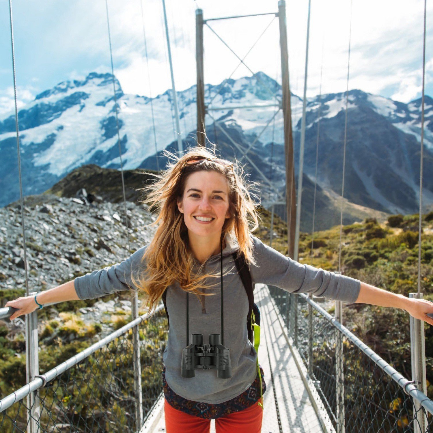 **Portable and Powerful Binocular*:Features Full 60 x magnification for bringing object 60 times closer; 50mm-diameter object lens for allowing more light to come through(more clear; even low light condition); 18mm-diameter eye lens for larger observation range and comfortable view. Owning a compact portable size with a rugged ABS exterior for comfortable grip and durable use.