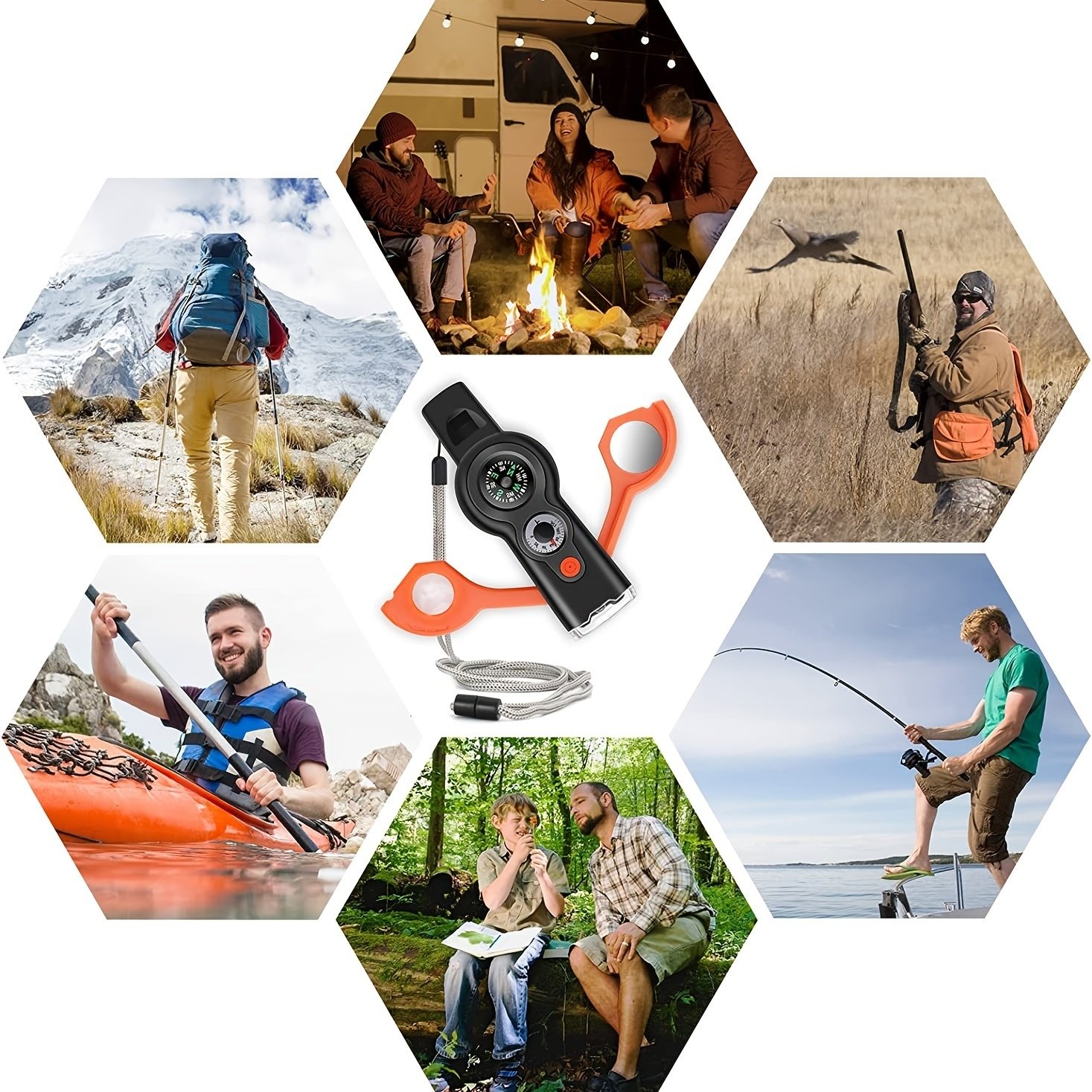 Home > 7-in-1 Multifunctional Outdoor Emergency Survival Whistle With Lanyard For Kayaking; Boating; Hiking; Camping; Climbing; Hunting; Fishing; Rescue Sign