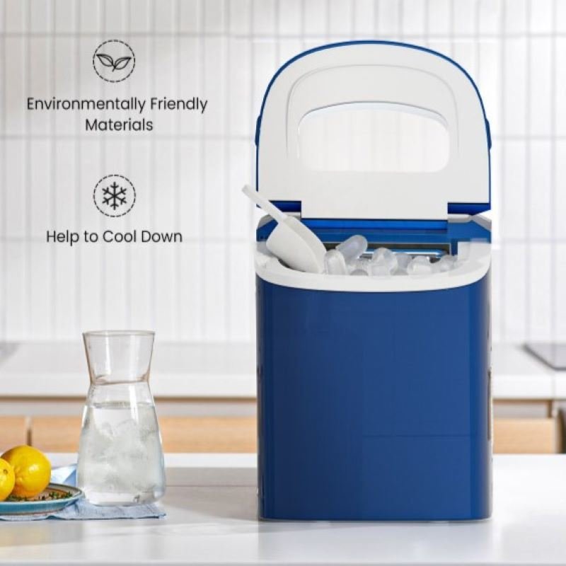 1.The ice maker is compact and portable that is perfect for home, office, recreational vehicles, car camping, hunting cabins, bars and more.