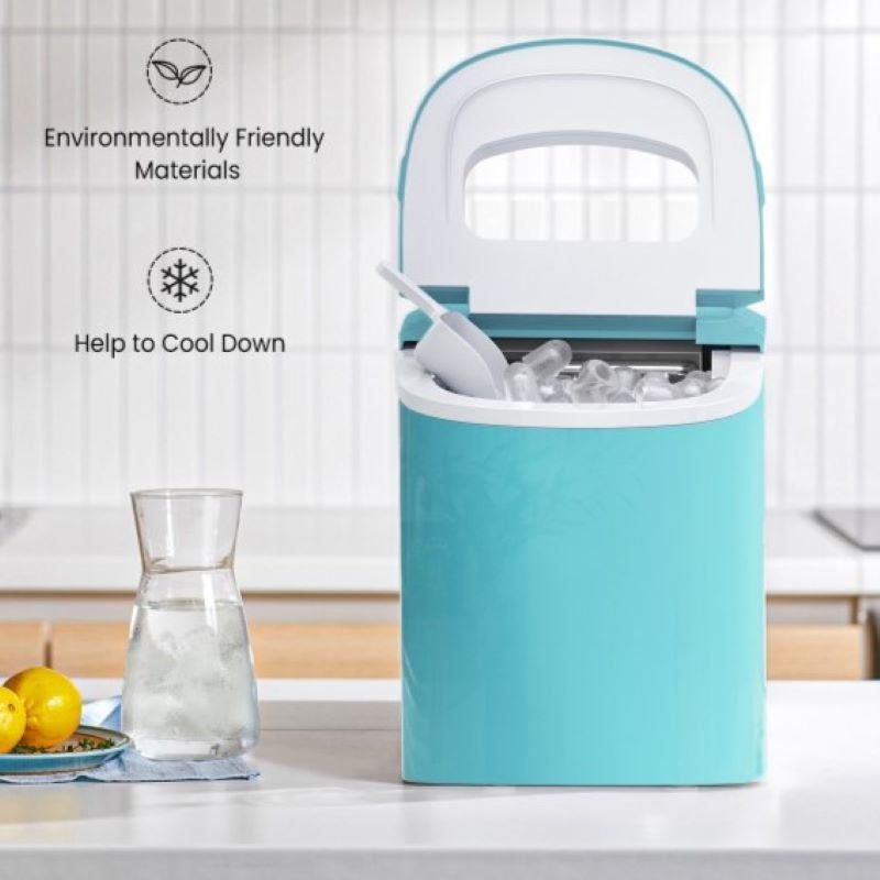 1.The ice maker is compact and portable that is perfect for home, office, recreational vehicles, car camping, hunting cabins, bars and more.