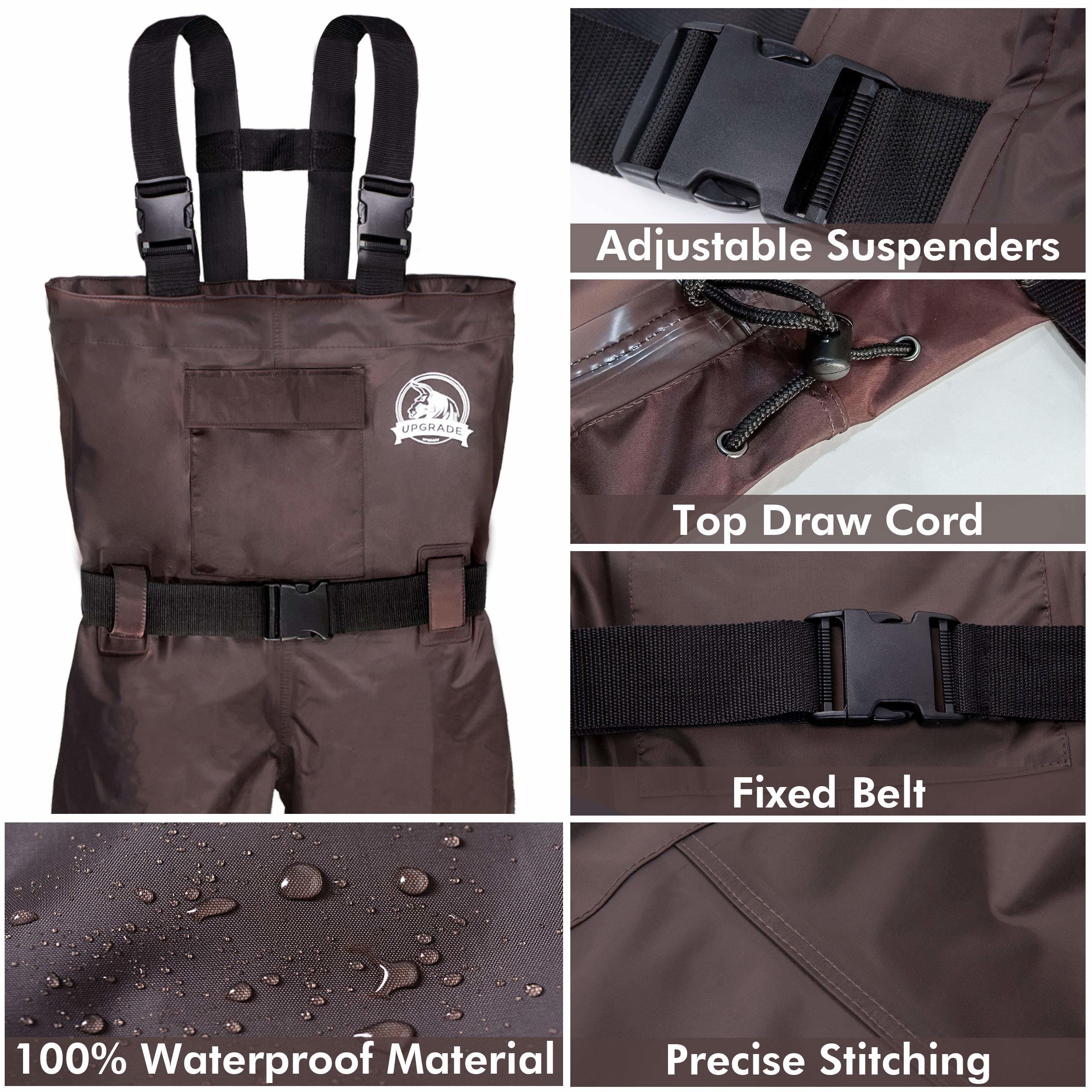 Home > UPGRADE Fishing Waders for Men&Women with Boots Waterproof; Nylon Chest Wader with PVC Boots & Hanger Brown